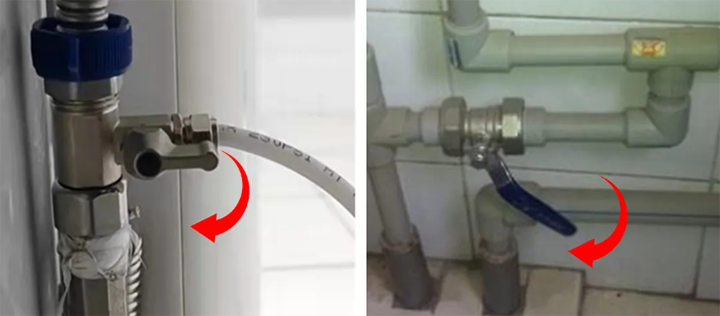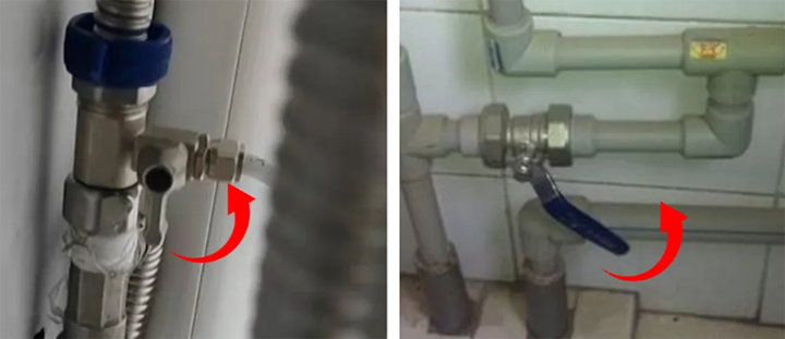 ● 确认球阀手柄与水机管线保持垂直